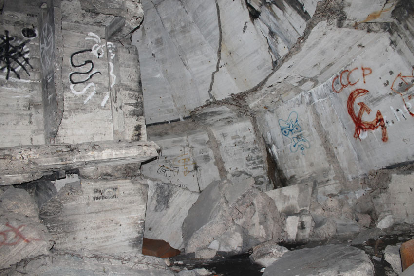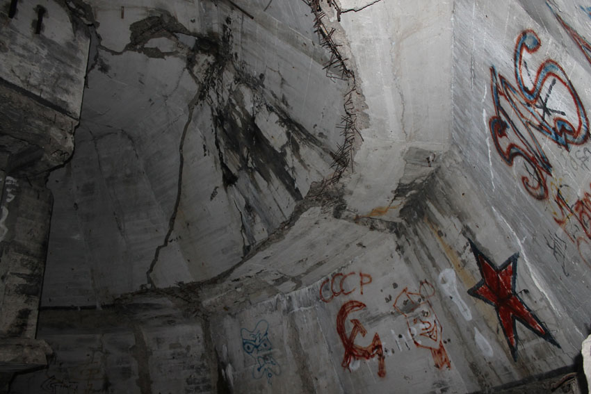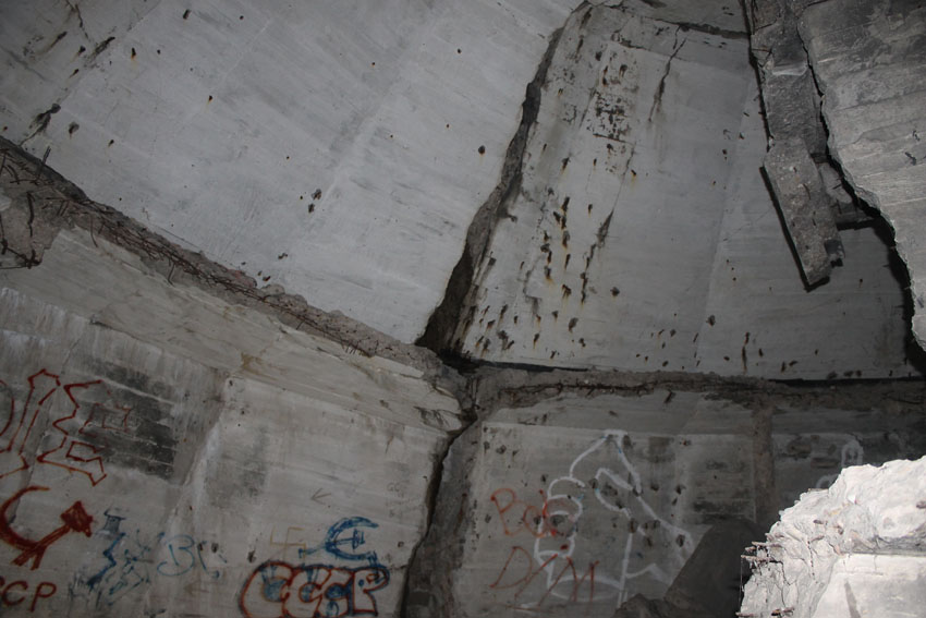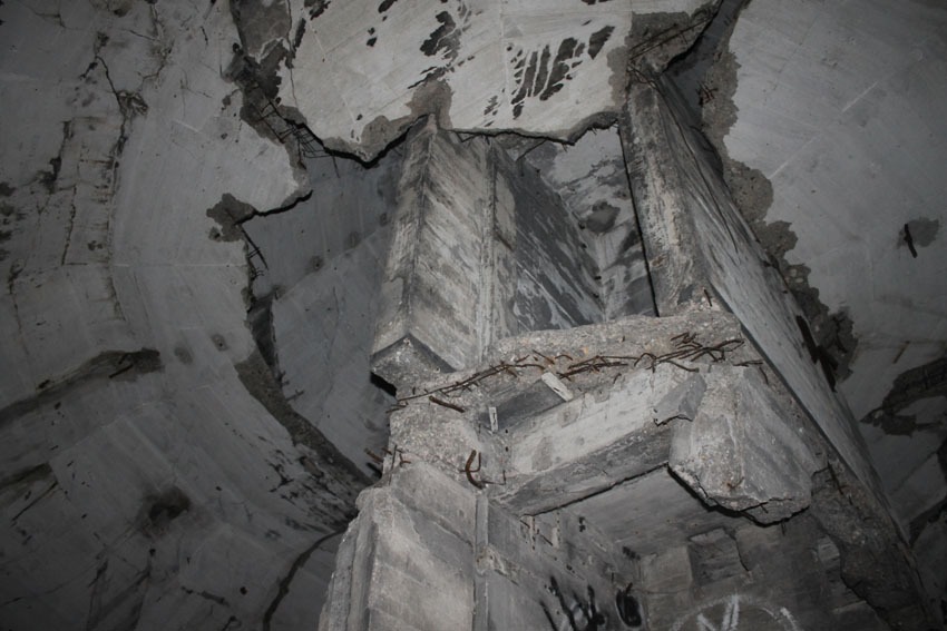 Blick bis ganz nach oben in die ehemalige achte Ebene zur Kuppelspitze. Es waren keine Sichtscharten vorhanden...