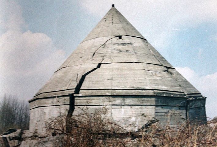 Von diesem Turm ist im Kuppelbereich lediglich Ebene 8 zur Hälfte erhalten / Geschossreste von Ebene 7, 6 und 1 (Erdgeschoss) existieren teilweise (im Gegensatz zur Skizze waren keine Sichtscharten in der Kuppel vorhanden!)...