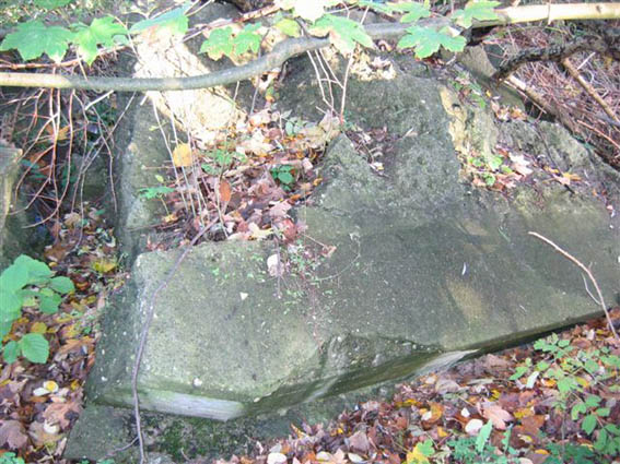 Unter dem zweiten Pfeil von rechts die Kuppel des gesprengten Turmes. Die Reste der (Rund)Türme 3 und 4 waren hier bereits scheinbar großteilig entfernt (größerer Bildausschnitt nach links hin liegt vor). Dies dürfte damit zusammenhängen, dass diese spärlicher bewehrt waren und die Trümmer somit leichter beseitigt werden konnten. Auch die Sprengung selbst dürfte diese Türme in kleinere Trümmer zerborsten haben, als die anderen Exemplare im Banter Lager.