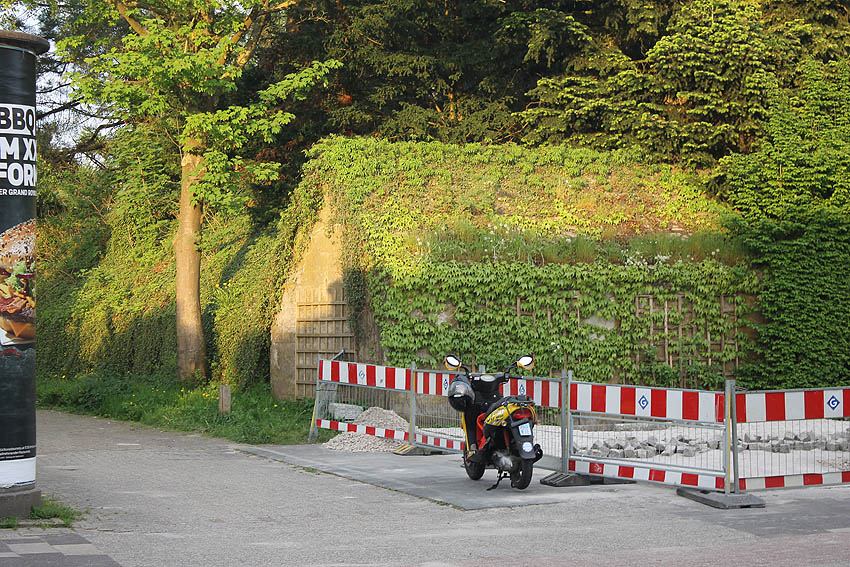 Stand August 2018: Die beiden betonierten Deckungsgräben der damaligen Grodenschule werden höchstwahrscheinlich doch erhalten bleiben. In einem Bebauungsplan sind sie - trotz Neubebauung dazwischen - weiterhin eingezeichnet. Aufgrund der immensen Abbruchkosten wird ein Abriss wohl glücklicherweise vermieden werden.