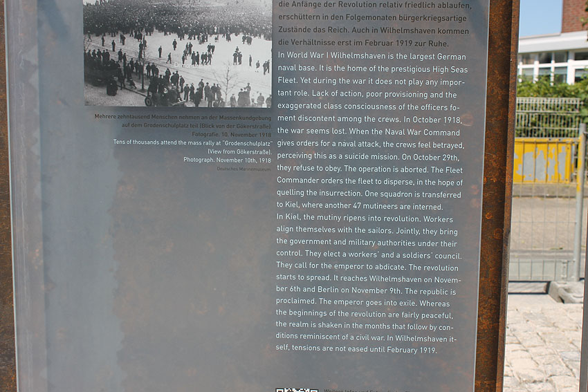 Kurios ist, dass hier das historische Elisenlustgebäude 2019 abgerissen wird, ein wichtiger Ort gerade auch im Hinblick auf den Matrosenaufstand. 2018 Aufstellung eines Denkmales für einen Ort, ein Gebäude, was ein Jahr später dann planiert wird. So etwas muss erhalten bleiben. Aber da reden wir gegen Betonköpfe...