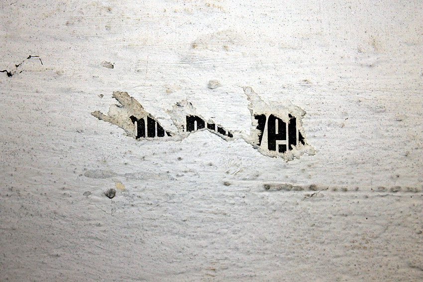 Reste eines Hinweistextes im Obergeschoss, wohl aus Kriegszeiten: