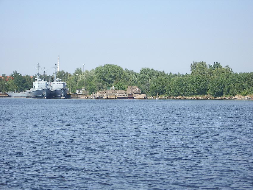 Blick vom gesprengten verbunkerten Dock auf die LS-Turmkuppel Ostkaje...