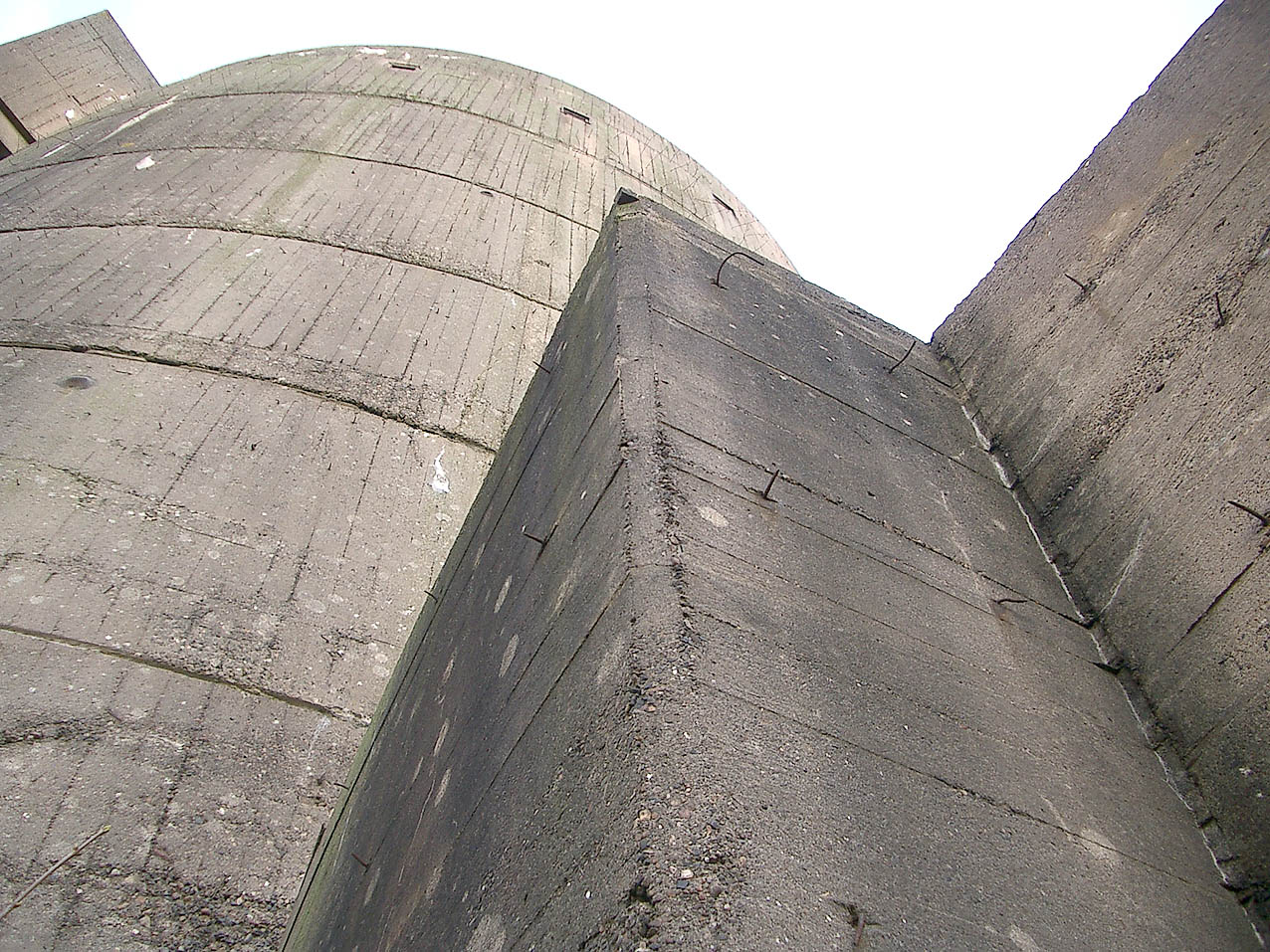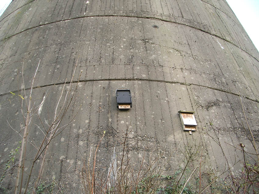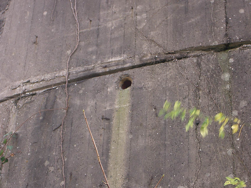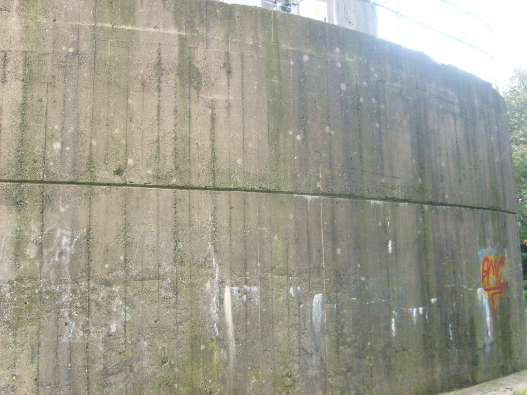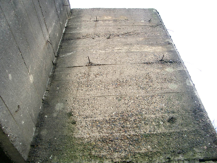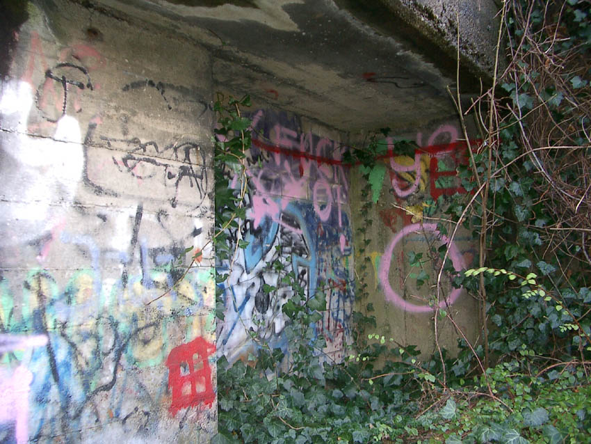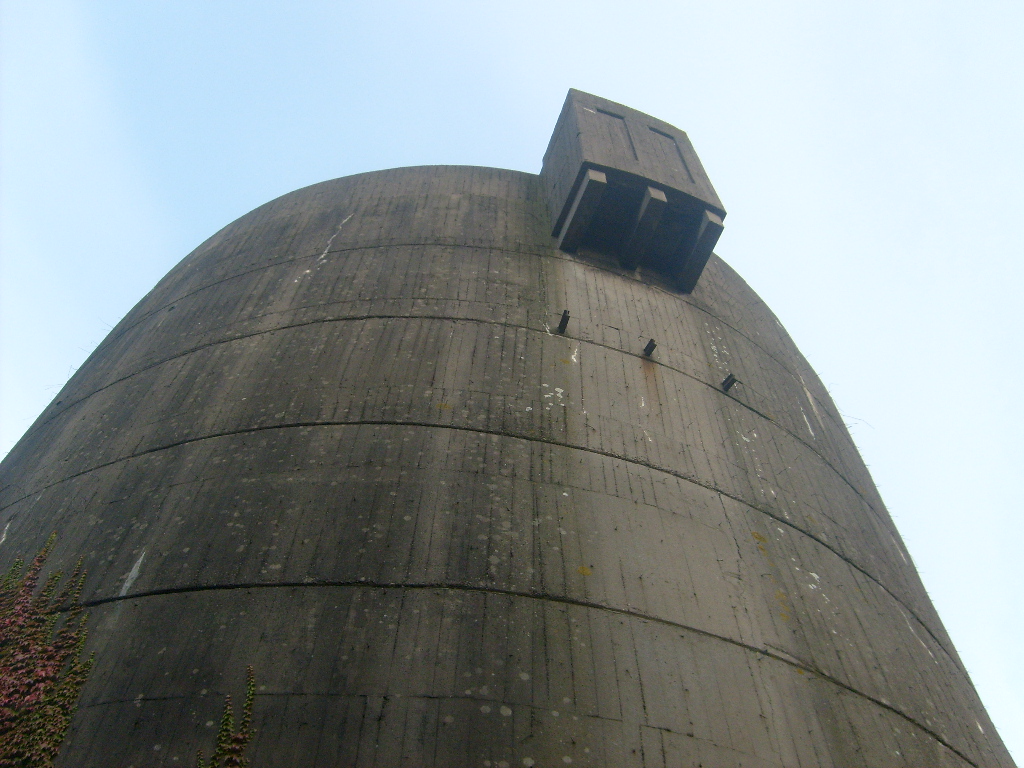 Nur die Außenhülle des Turmes ist intakt, er wurde von innen gesprengt. Alle vier Eingänge der Splitterschutzvorbauten sind vermauert.