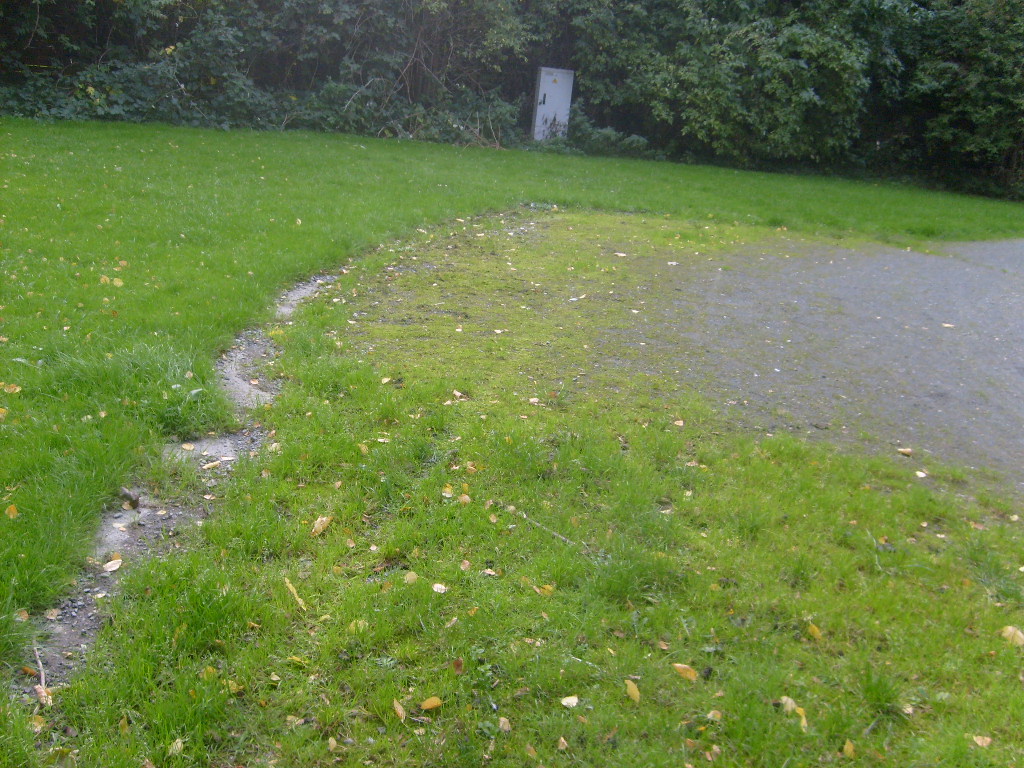 Blick von der Kirchreihe mit später abgerissenem Gehöft "Silbermüller" nach Osten zum LS-Turm Fichtestraße (LS-Turm Freiligrathstraße / Liliencronstraße gerade außerhalb des Bildes links).