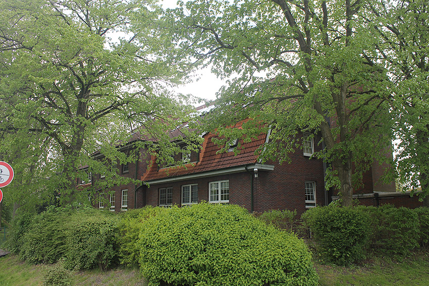 Bild von 1942 / höchstwahrscheinlich Frühjahr. Noch keine Splitterschutzvorbauten an der Südseite des Gebäudes. Auch noch keine beiden Rundbunker nördlich. Diese wurden im Jahre 1943 errichtet.