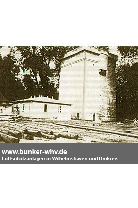 Der ersichtliche südliche Splitterschutzvorbau wurde erst nachträglich mit Greifen der verschärften Luftschutzverordnungen angebaut. Da der Bunker nur einen Lüftungsturm hatte, müsste der Vorbau aufgrund der (wegen des auch hier ersichtlichen Lüftungsturmes) gleichen Aufnahmeperspektive theoretisch auf dem oberen Bild mitten in der Baracke stehen. Also muss dies ein Bild aus frühen Tagen des Bunkers sein. Auf den beiden anderen Bildern mit Splitterschutzvorbau sind zudem wesentlich weniger Bäume zu sehen. Anscheinend wurde (aus LS-Gründen) eine Rodungsaktion des Geländes durchgeführt. Diese Freiflächen sind auch ganz unten auf dem Bild von 1968 noch zu erkennen. Die Baracke wurde aufgrund des Splitterschutzvorbaues entfernt.