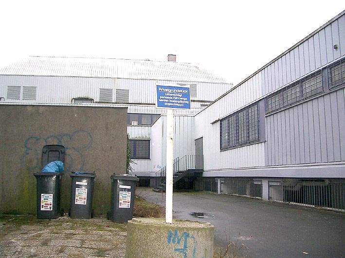 Der Standort heute. Der Bunker befand sich genau dort, wo jetzt der Garagenhof und der Nordbereich des großen Stadthallengebäudes existiert...