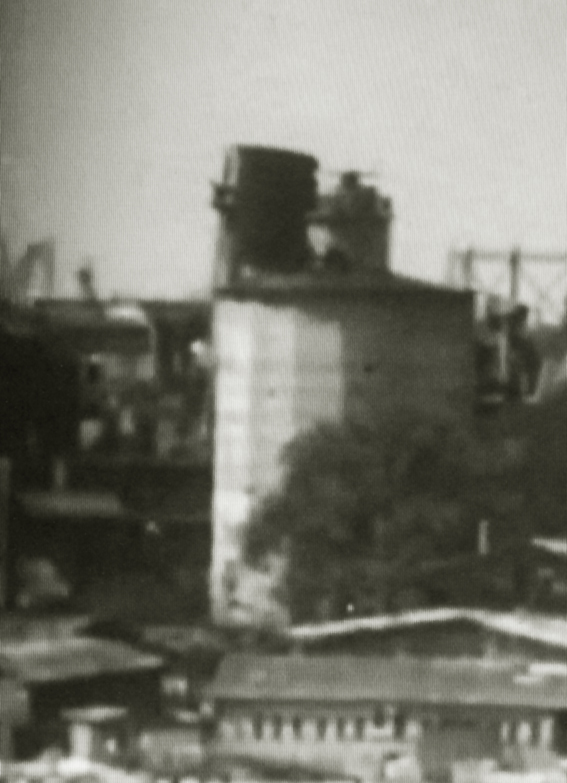 Links Splitterschutzunterstand / rechts gesprengter LS-Turm Hafeninsel: