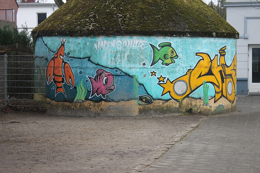 Der Bunker wurde bereits vor einiger Zeit neu angemalt. Die Metallblende vor dem Eingang wurde dabei übermalt.