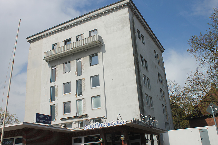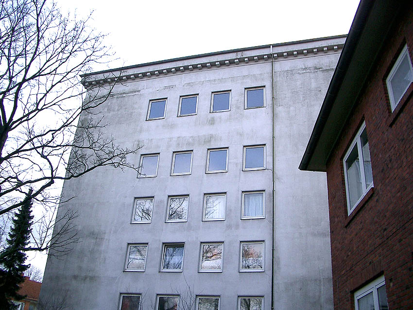 Dieser LS-Turm besaß genau entgegengesetzt der hier sichtbaren Seite einen am Dachbereich angesetzten Lüftungsturmanbau, ähnlich dem des Gorch-Fock-Luftschutzturmes, wie beschrieben baugleich zu dem des Bunkers Kantstraße und ähnlich denen der bekannten 10er (bzw.15er) Luftschutzturmreihe Wilhelmshavens. Interessant ist auch der noch heute vorhandene aufgesetzte Beobachtungsstand (mit relativ großen Sichtfenstern statt den üblichen Sichtscharten) und der verzierte Simsbereich, wie erwähnt baugleich zu dem des Bunkers Kantstraße. Nur fehlen hier im Gegensatz zur Kantstraße die eingelassenen Quadrate unter dem Sims.