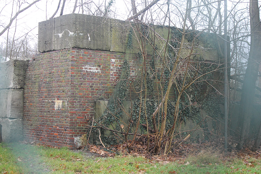 Die hinter dem Bunkerforscher erkennbare starke Verklinkerung diente lediglich der Wandverstärkung und nicht der Ästhetik. Der gesamte Bunker war lediglich teilverklinkert.
