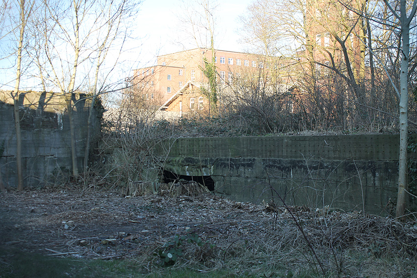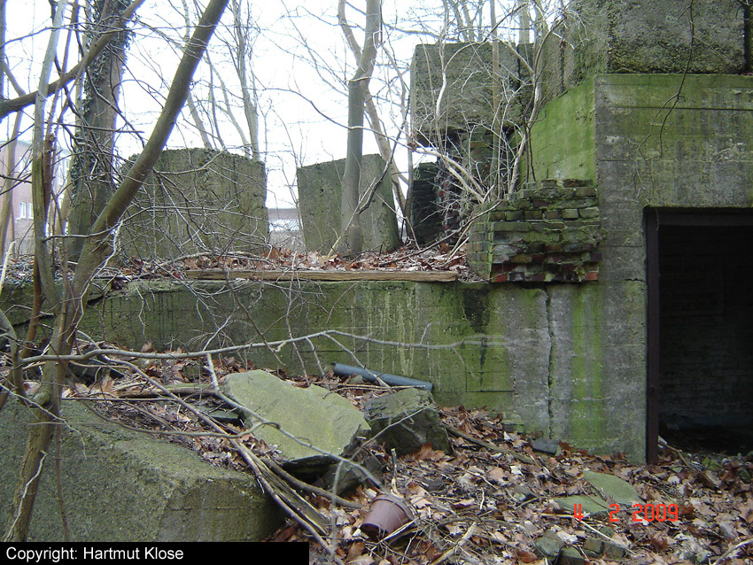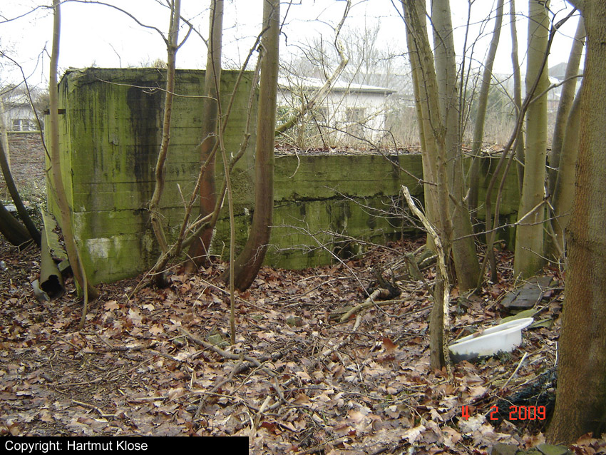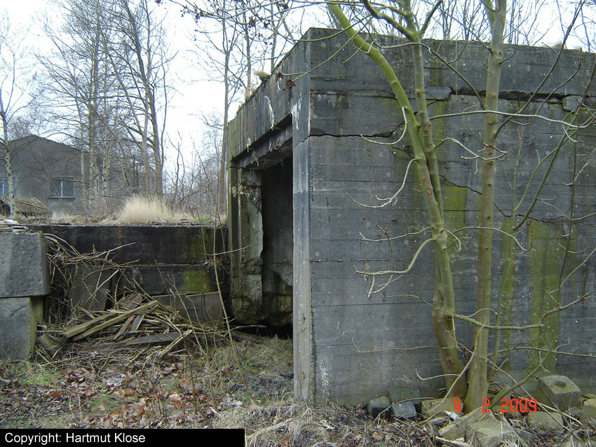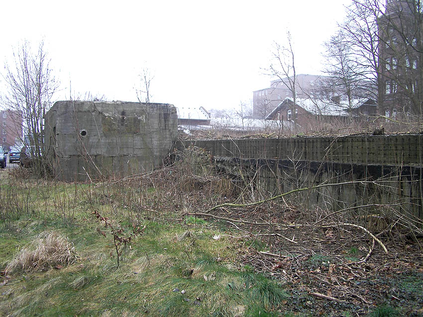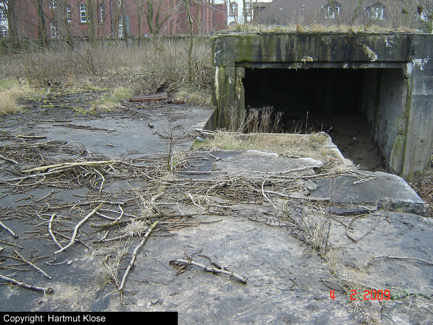 Teilbereiche der alten Werftmauer mussten aufgrund Baufälligkeit mittlerweile entfernt werden. Nun ist der Südostbereich des Bunkers von der Straße aus gut zu erkennen. Am dortigen Eingang hängt seit längerer Zeit (mindestens seit 2004) ein BW-Tarnnetz: