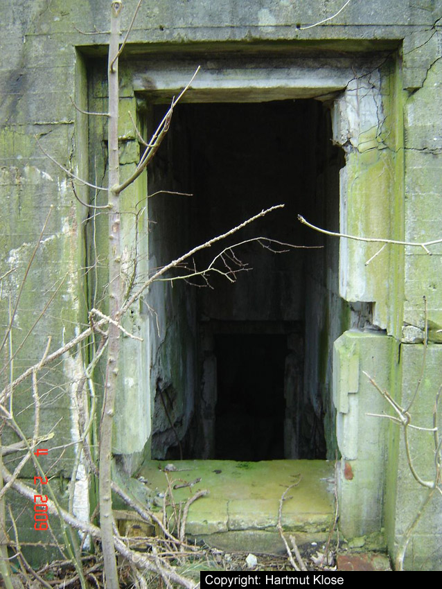 Der Südosteingang wurde mittlerweile mit vormals auf dem Dach befindlichen Betonblöcken versiegelt.