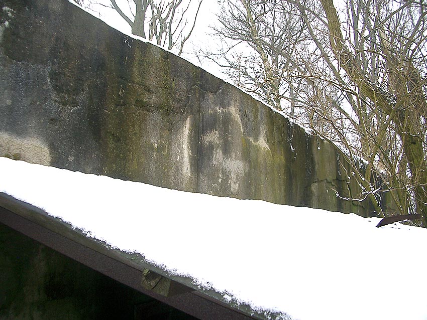 Die Außenwände des Bunkers sind teilweise mit Spritzputz überdeckt...