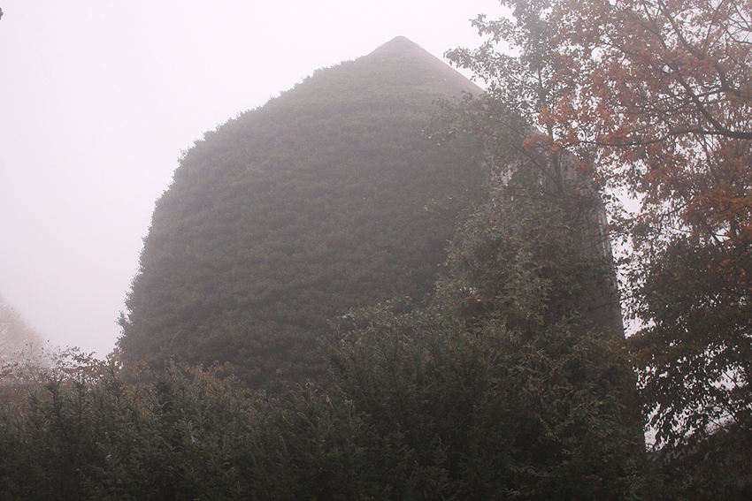 Interessant ist dieser Schacht. Er führt in der Abortsäule bis nach oben an / in die Turmkuppel hinein, die an der Stelle scheinbar einen Hohlraum (!) aufweist.
