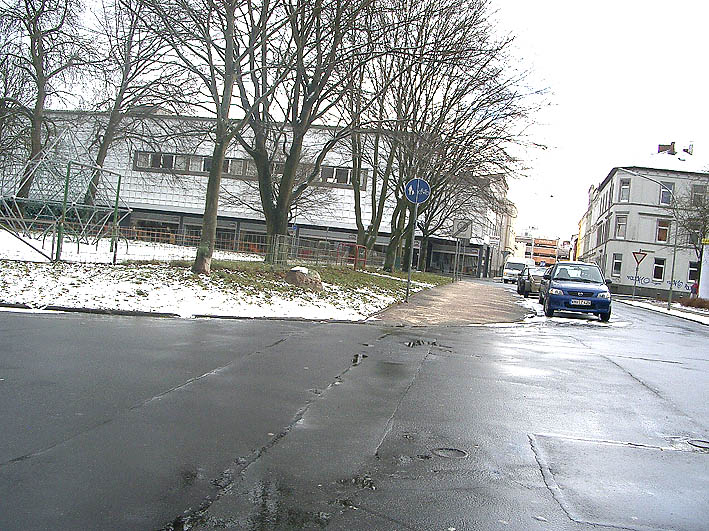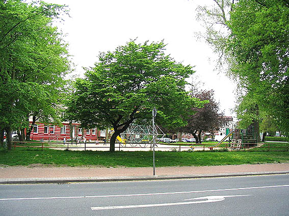 Der Standort heute. An der Litfaßsäule war die Nordwand des Bunkers...