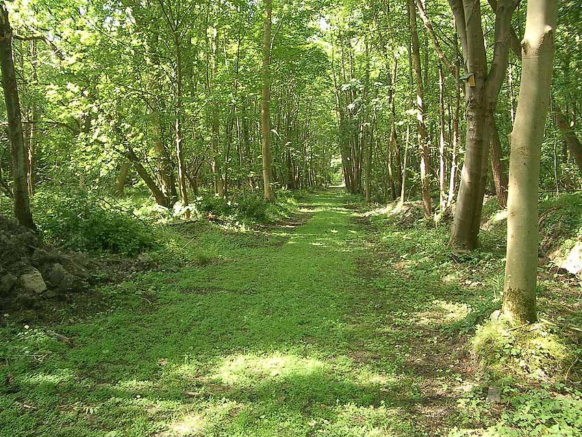 Sicht auf die ehemalige Siemensstraße. In Blickrichtung rechts davon liegt der Rest des Munitionsbunkers...