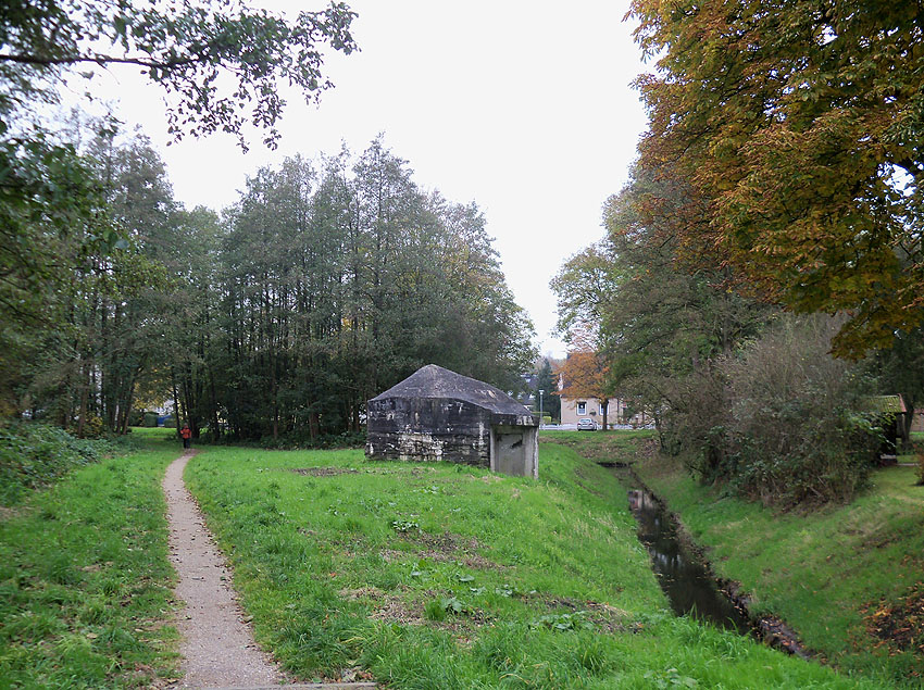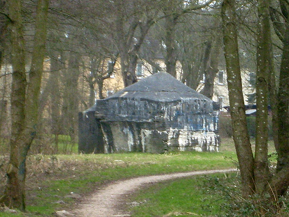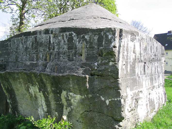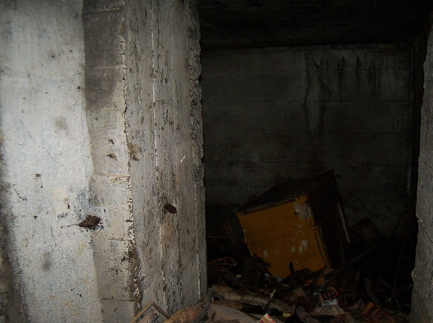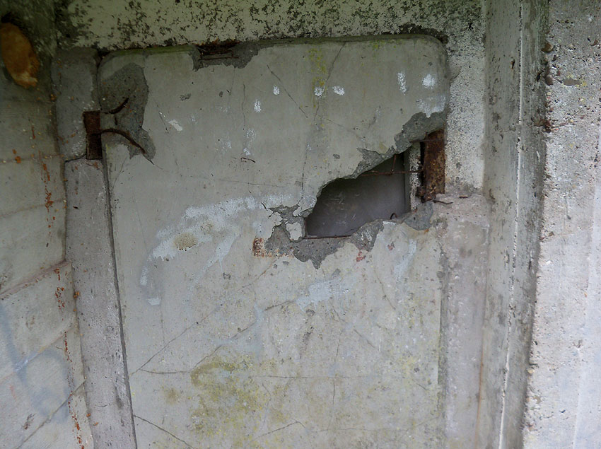 Hier war ein mutmaßlich verbunkerter Anbau in Röhrenbauform angesetzt. Links zu sehen ein runde Aussparung am Bunker in vertikaler Richtung. Dort könnte ursprünglich eine Art Rohr positioniert gewesen sein...