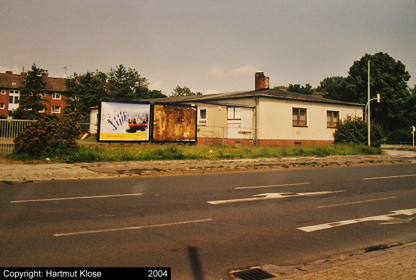 Folgende Bilder: Am Behelfsbunker war im dortigen Gebäude bis kurz nach der Jahrtausendwende der Wilhelmshavener Zivilschutz / Katastrophenschutz ansässig. Der nahe Hochbunker Genossenschaftsstraße wurde zeitweise für Übungen genutzt. Bemerkenswert ist die Haube auf dem Schornstein. Eventuell stammt diese von einer Sirene (jedoch wohl nicht vom Typ E57). Das Gebäude samt Behelfs-Schutzbau wurde 2005 abgerissen. Heute ist hier ein Supermarkt samt Parkplatz.