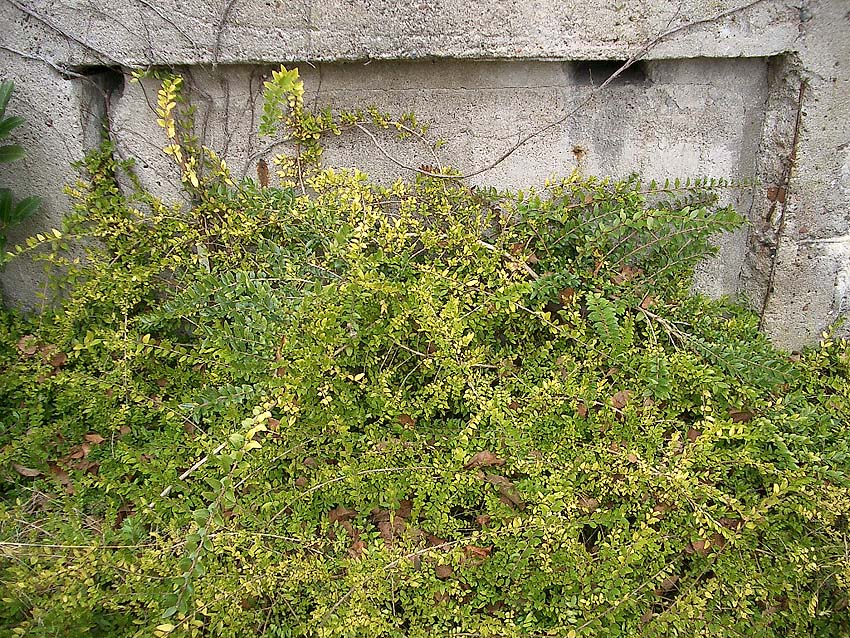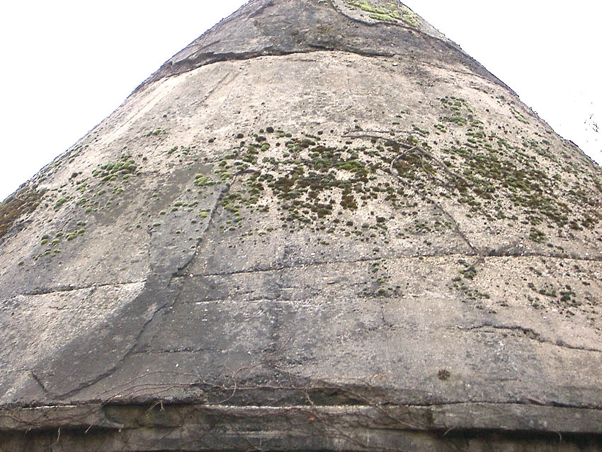 Auch der Notausgangsblock dieses Bunkers besitzt zwei Zughaken (Lastenheber sollten im Notfall den Block herausziehen), schemenhaft im Gewächs zu erkennen...