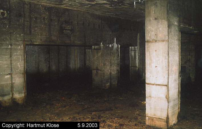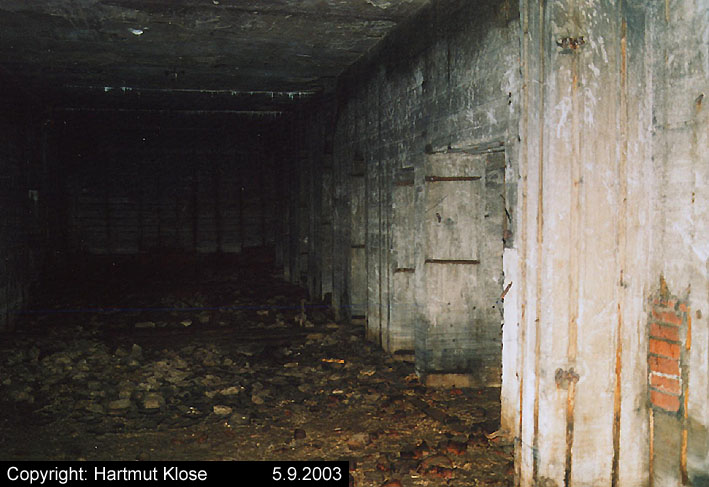 Der gesprengte Bereich an der Westfassade. Hier befand sich ursprünglich ein Anbau mit Beobachterturm und leichter Flakstellung...