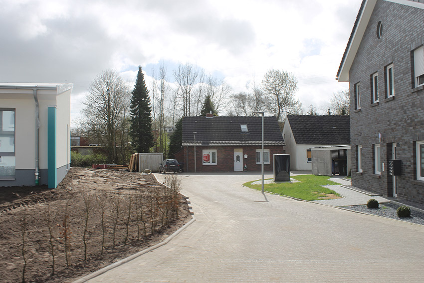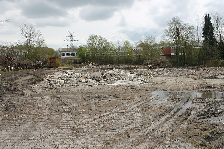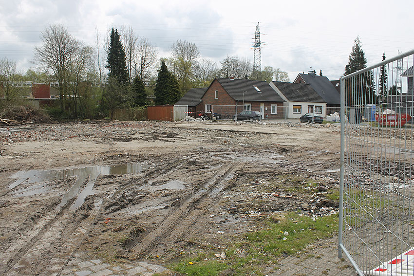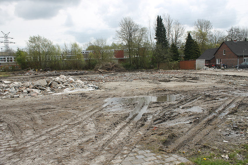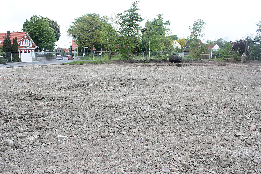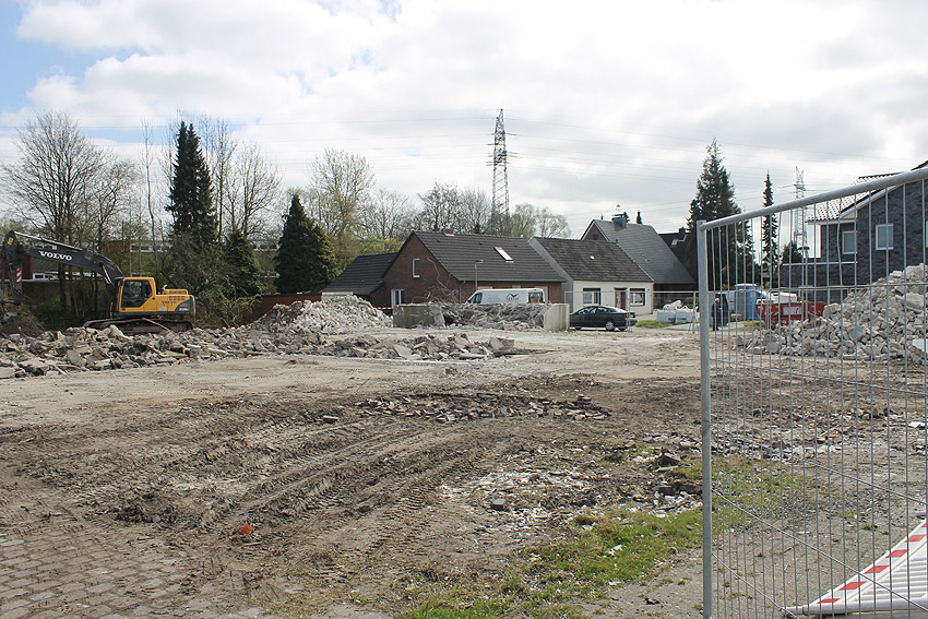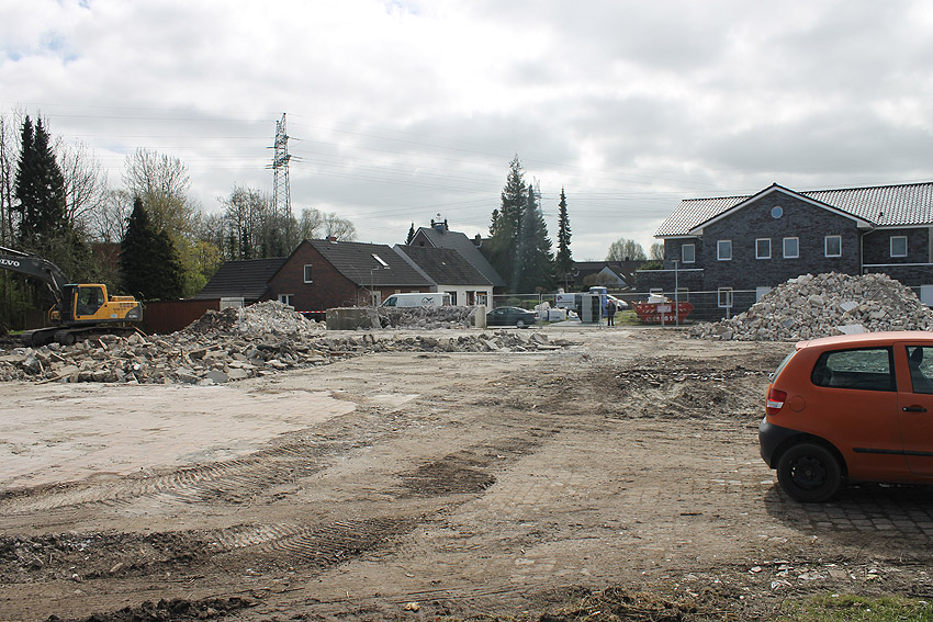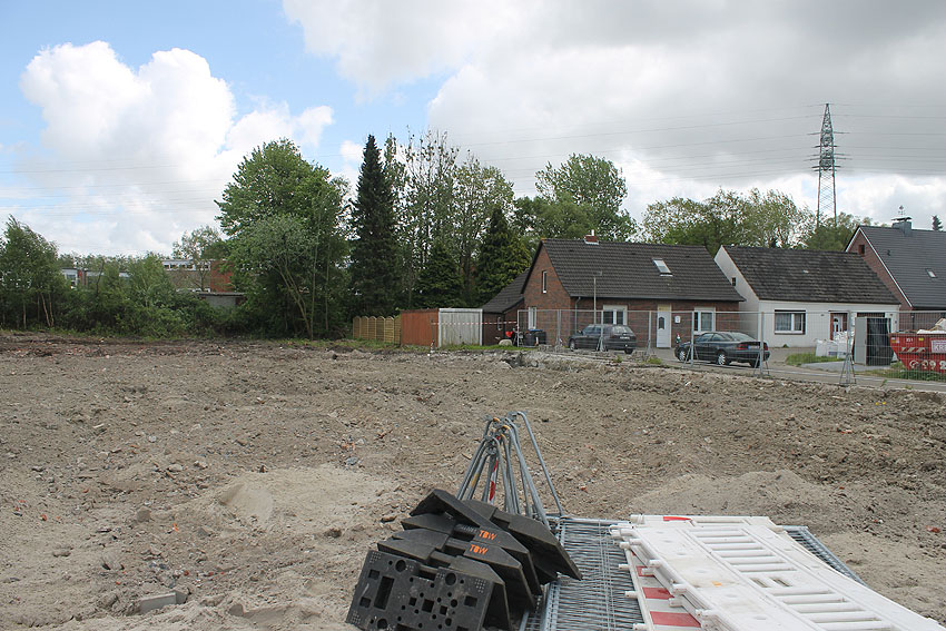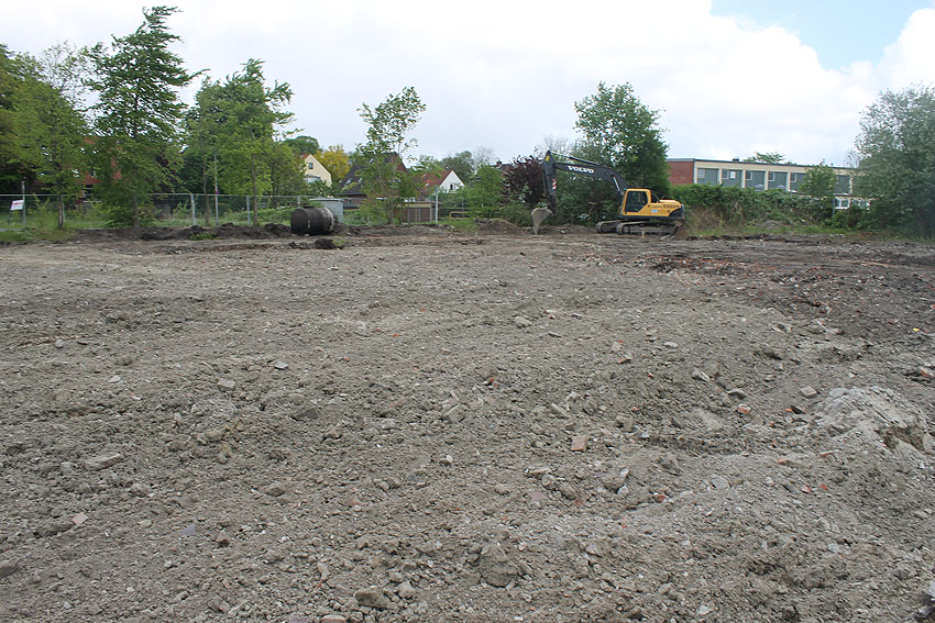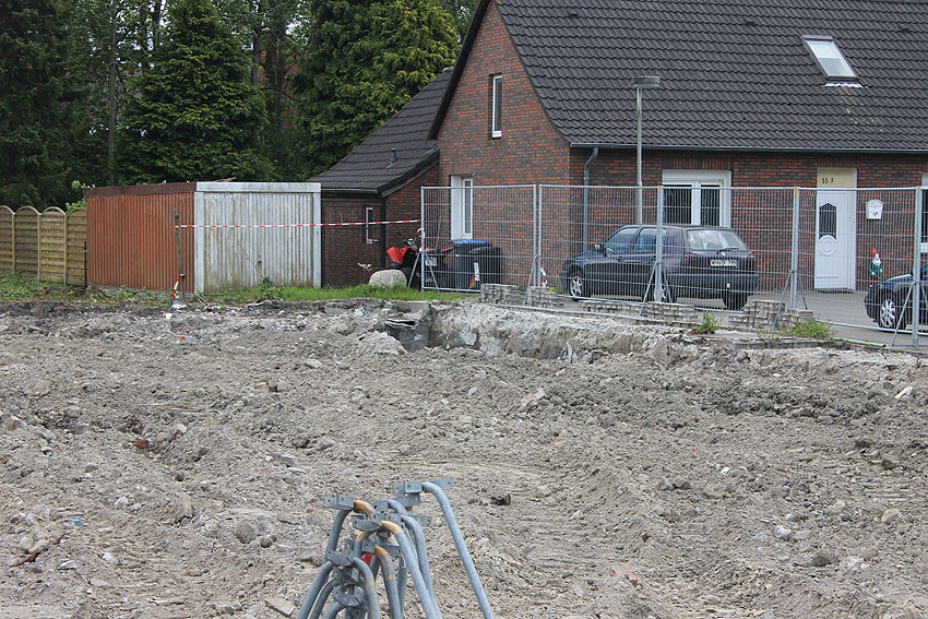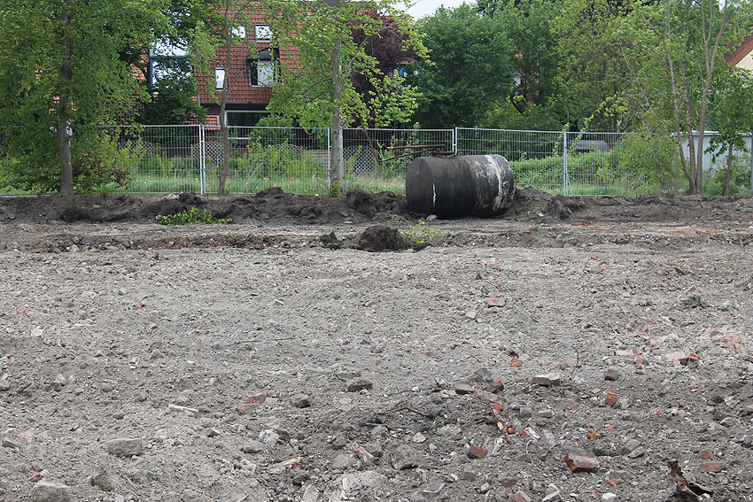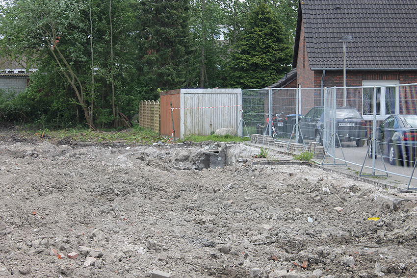 So sieht das Gelände mittlerweile aus. Der Neubau, ein Kindergarten, ist vollendet und in Nutzung. Der Bereich des ehemaligen kleinen Bunkers ist nicht bebaut. Die Anlage hätte daher als Anschauungsobjekt erhalten bleiben können, eventuell auch im Verbund mit dem Kindergarten als "Spielkeller" oder ähnliches.
