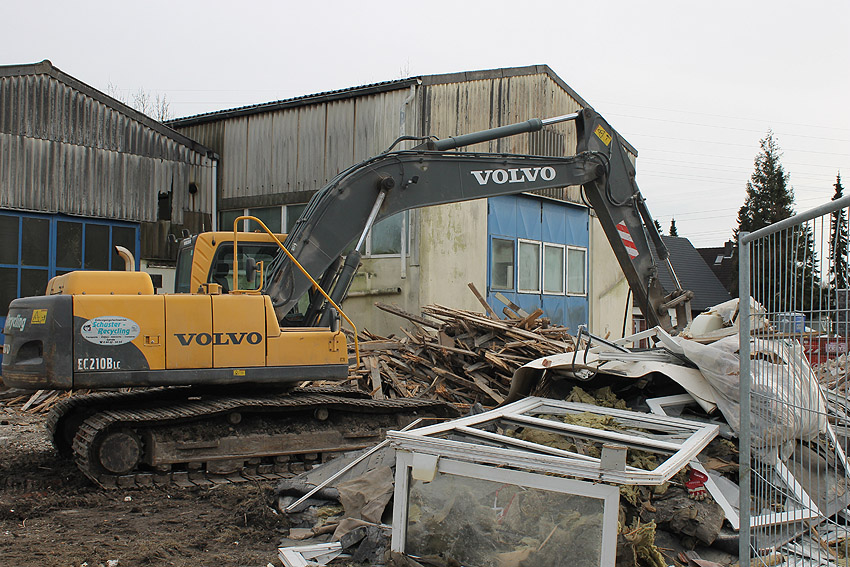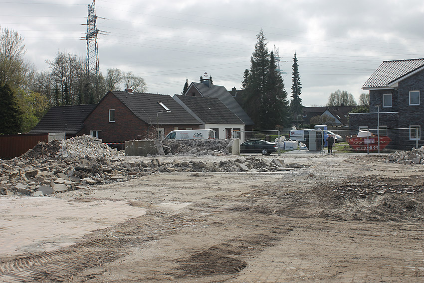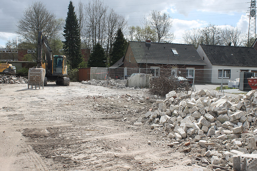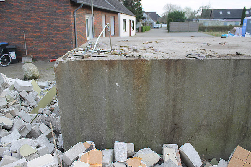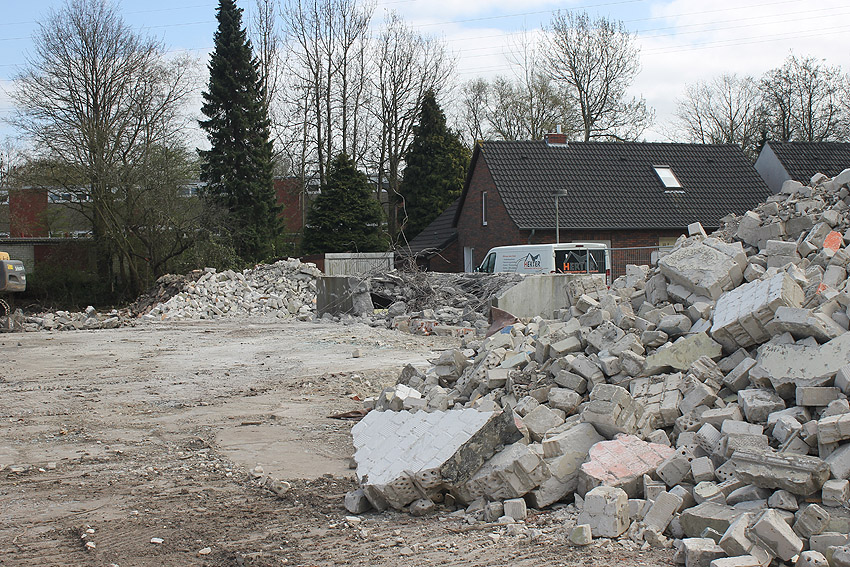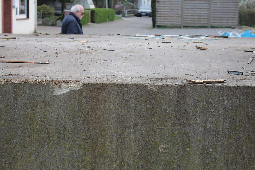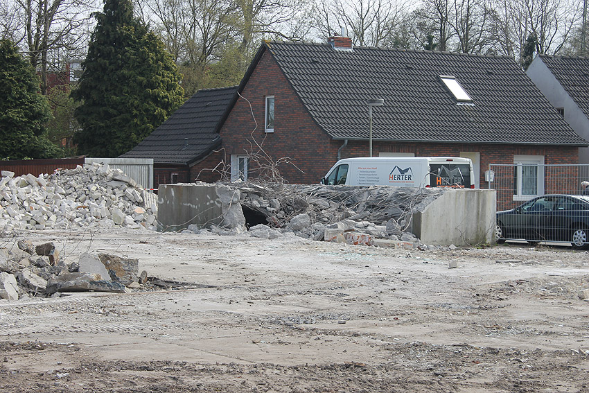 Der kleine Schutzbau Rüstersieler Straße 67 befindet sich seit gestern, 15. April 2016, im Abriss. Der Eingangsbau ist bereits zerstört, ebenso ein Teilbereich der Decke. Damit verschwindet wieder ein Relikt, das man ohne Mühe hätte als Anschauungsobjekt erhalten können. Gestört hätte allein platzmäßig das kleine Bauwerk für das Neubauvorhaben bestimmt nicht...
