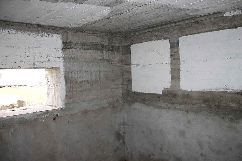 Der gesamte Bunker ist außen verputzt. Ursprünglich war er mit Erdreich angeböscht und überdeckt...