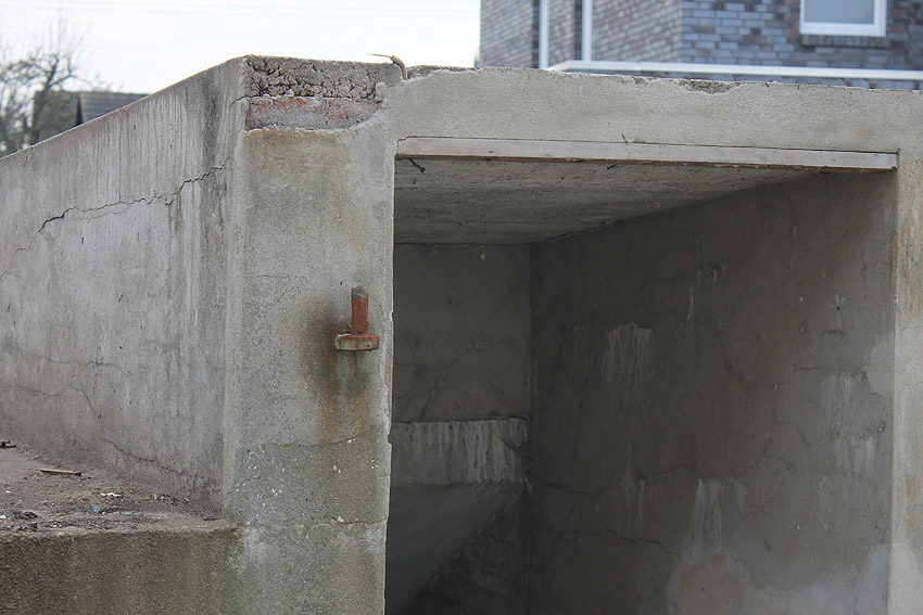 Entweder am 20. (nachmittags), 21. oder / und am 22. April wurde der kleine Bunker großteilig in Schutt verwandelt. Die Decke existiert nicht mehr, ebenso größere Bereiche der Wände. Der Innenraum ist mit Trümmerstücken verfüllt. Neben dem Bauwerk liegt ein Knäuel, bestehend aus der Betonbewehrung...