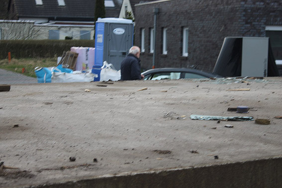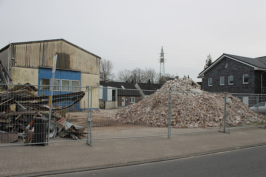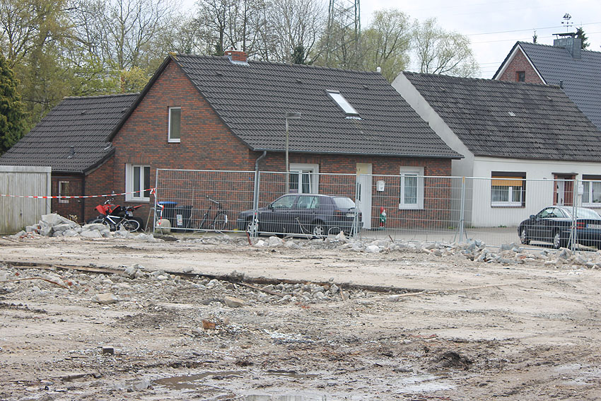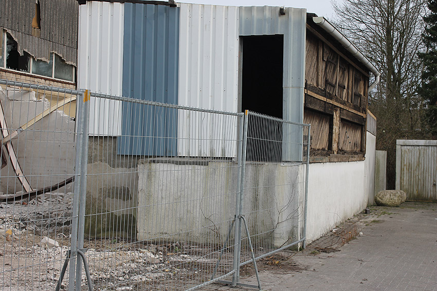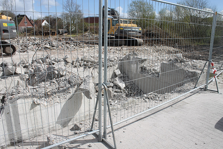 Wider Erwarten heute keine weitere Abrisstätigkeit. Der Schutzbau ist übrigens bauartgleich zum 2006 abgerissenen Zwilling in Rüstersiel bei "Blumen Fass" ausgeführt worden...