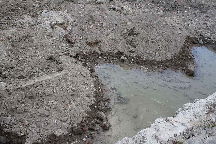 Ehemaliger Standort des kleinen Schutzraumes Rüstersieler Straße 67: Nur noch eine mit Wasser vollgelaufene Kuhle...