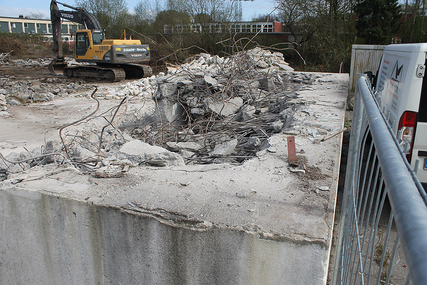 Der Abriss ist weiter fortgeführt worden. Entweder heute, oder am gestrigen 19. April... Die Decke des Bauwerkes ist fast zerstört.