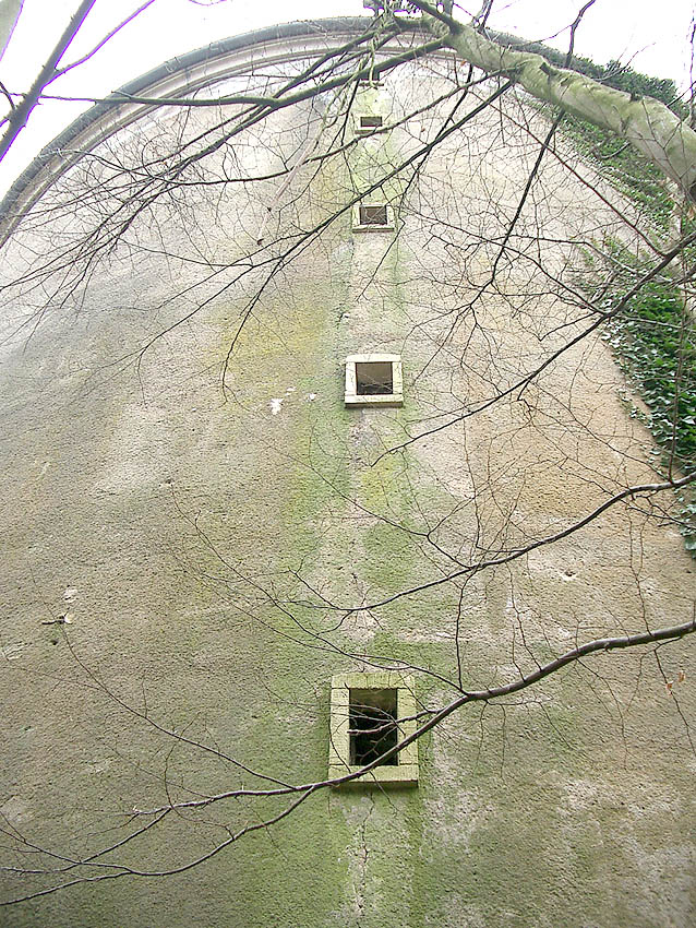 Stürme haben in den vergangenen Monaten fast sämtliches Efeu vom Turm gerissen. Auch die Konsolen am Westeingang sind mittlerweile beschädigt.