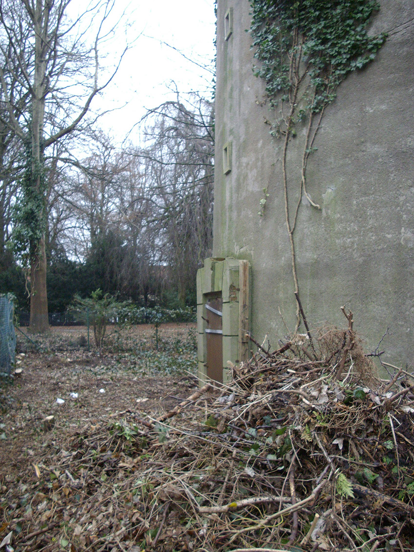 Das umliegende Baumwerk wurde gefällt und das Grundstück von Unrat und gestapeltem Astwerk bereinigt.