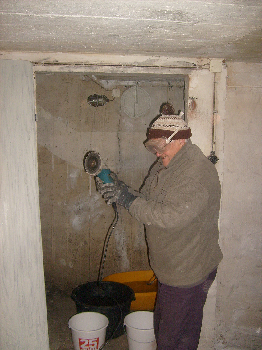 Die Feuchtigkeit hat leider gewonnen und trotz immer wieder versuchter Gegenmaßnahmen alles organische Material teilweise sogar total zerstört. Die Ebene wurde daraufhin mit allen noch brauchbaren Lagerungsgegenständen geräumt und schließlich notwendigerweise aufgegeben. Schade um die schöne Installationsarbeit von 2011...