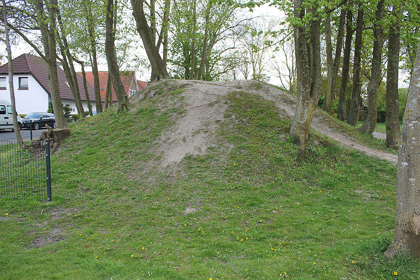 Bildmitte: Hier dürfte eine Spitzkuppel des Bunkers erkennbar sein. Dann wäre der Bunker wohl bauartähnlich zu jenem an der Pastorei in Fedderwarden...