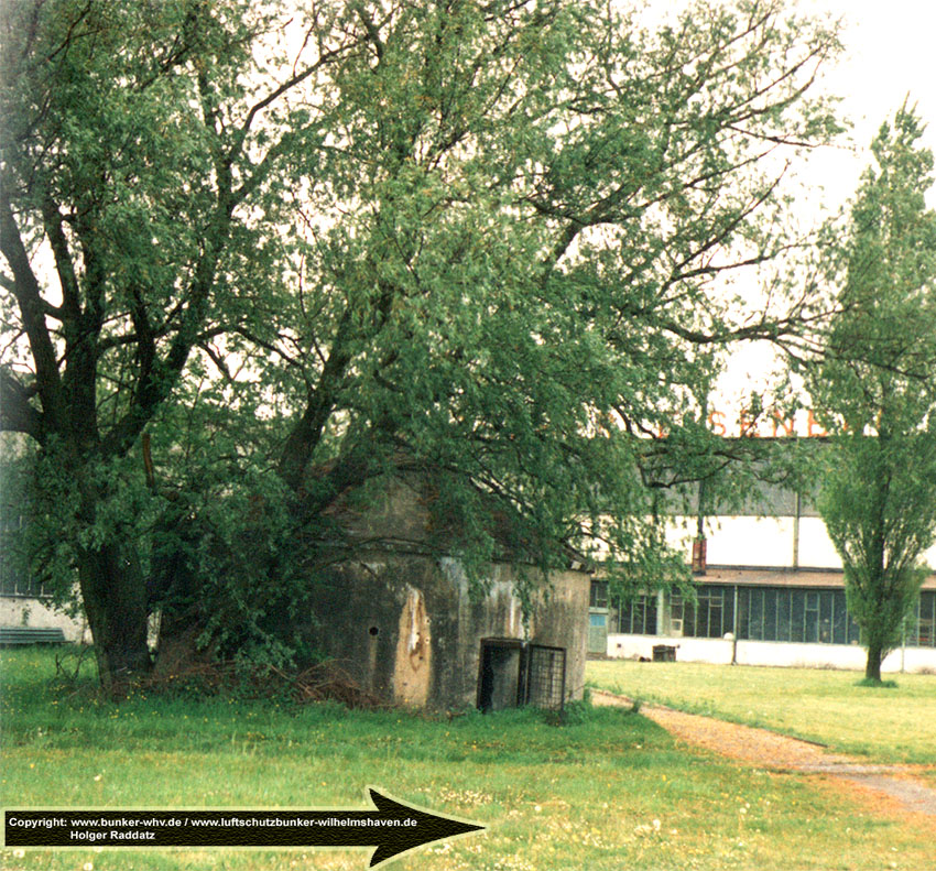 Der Bunker besaß rückseitig einen Notausstieg (eventuell war dieser mit einem Betonnotausstiegsblock mit Transporthaken versiegelt). Unten ersichtlich ist der Eingang.