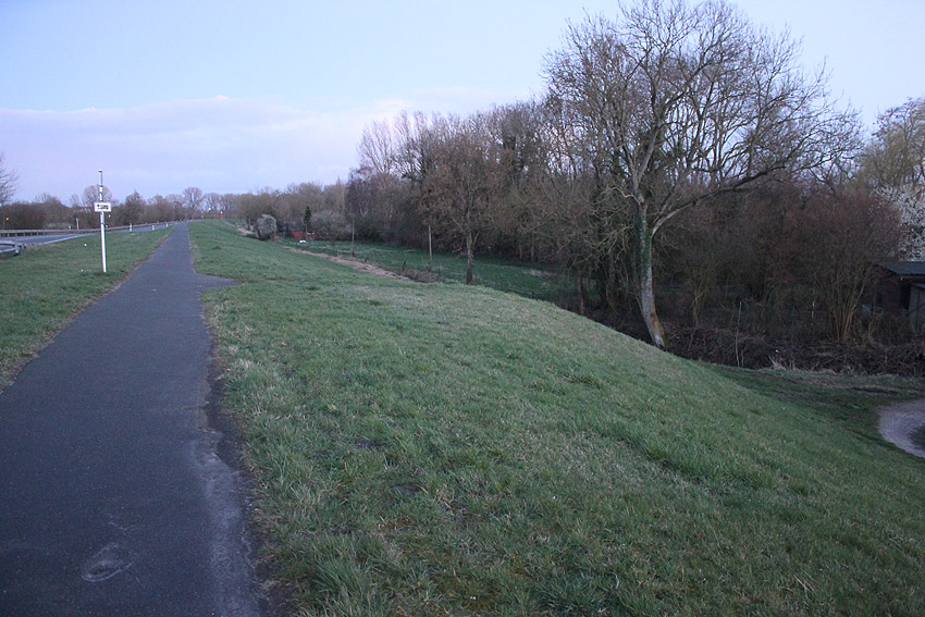 Diese drei Ausbuchtungen (mit Deichzuwegungen und Treppe) landseitig im alten Deich im Bereich "Grodenbatterie" und weiter südlich sind verdächtig. Es ist nicht auszuschließen, dass hier weitere Tobrukstände, die eventuell noch immer existieren, in den Deich gesetzt worden sind: