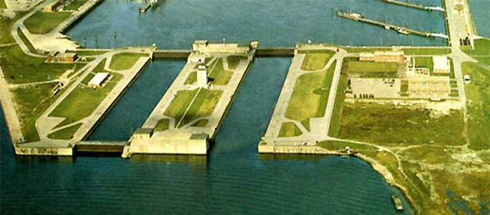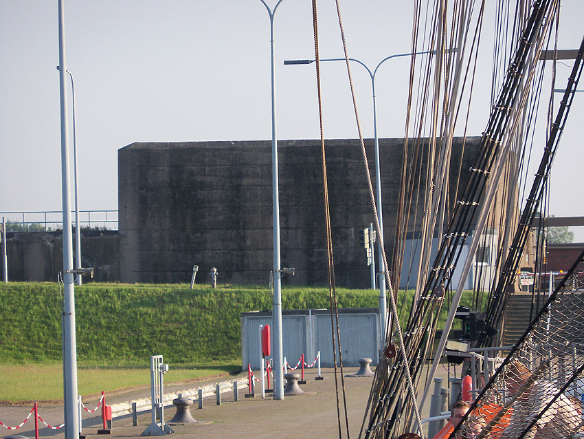 Moderne Treibstoff- und Ölbunker im Bereich des Stützpunktes der 4. Einfahrt (ein so genanntes "Onbase"-Tanklager der NATO). Unweit nördlich davon (hier ganz rechts u.a. im folgenden Bild) der Rüstringer Berg, ehemals schwere Flakstellung Raederschleuse Nord: