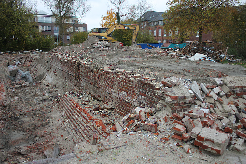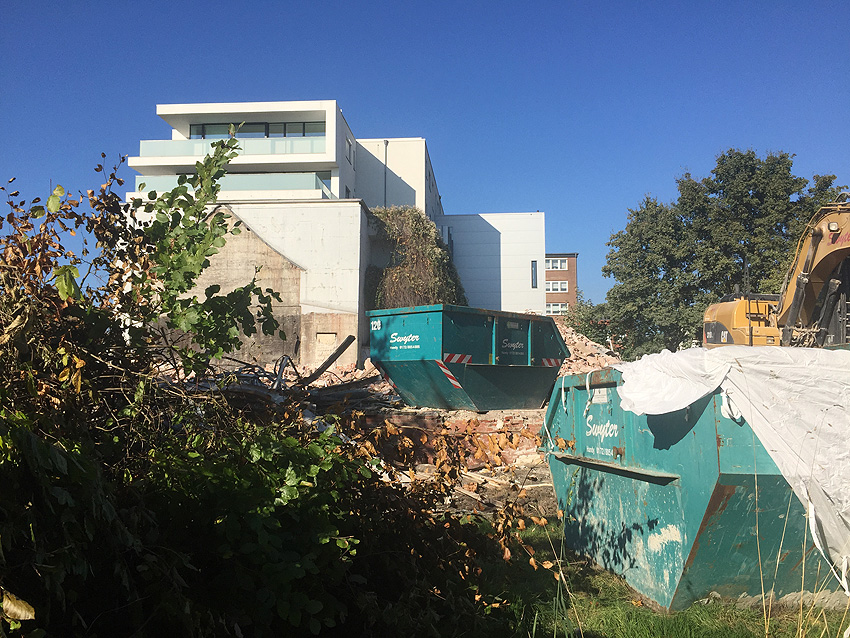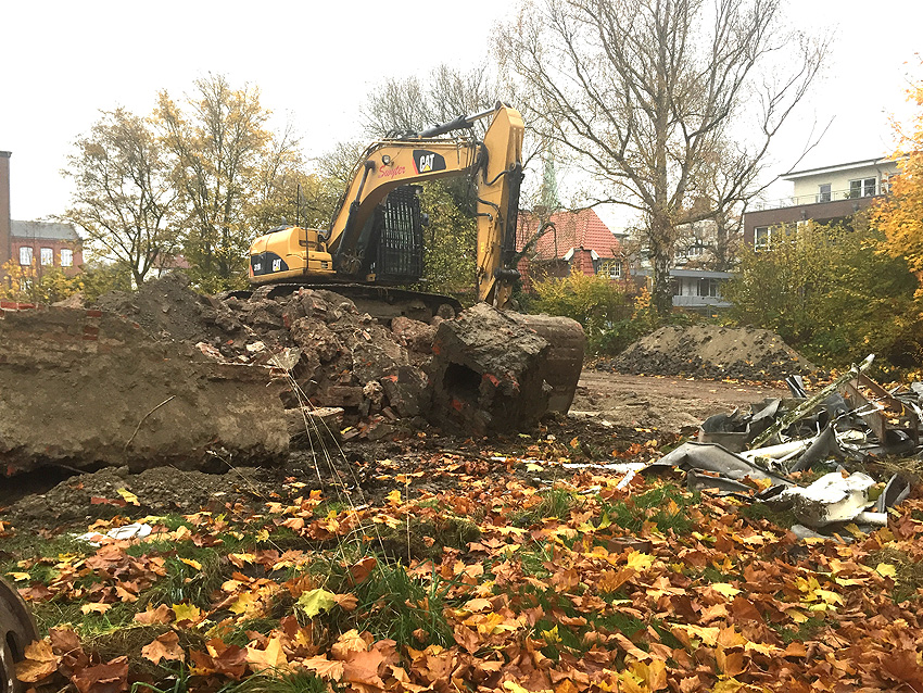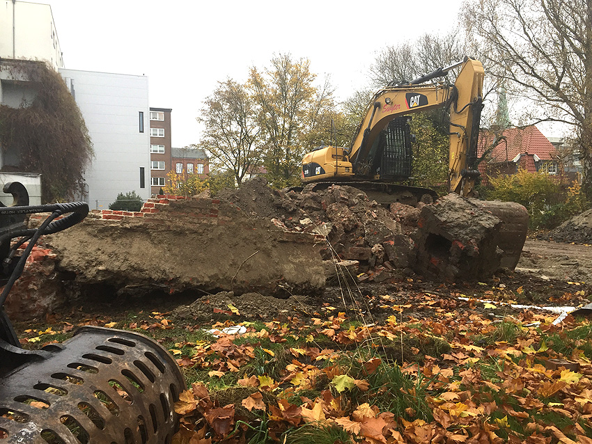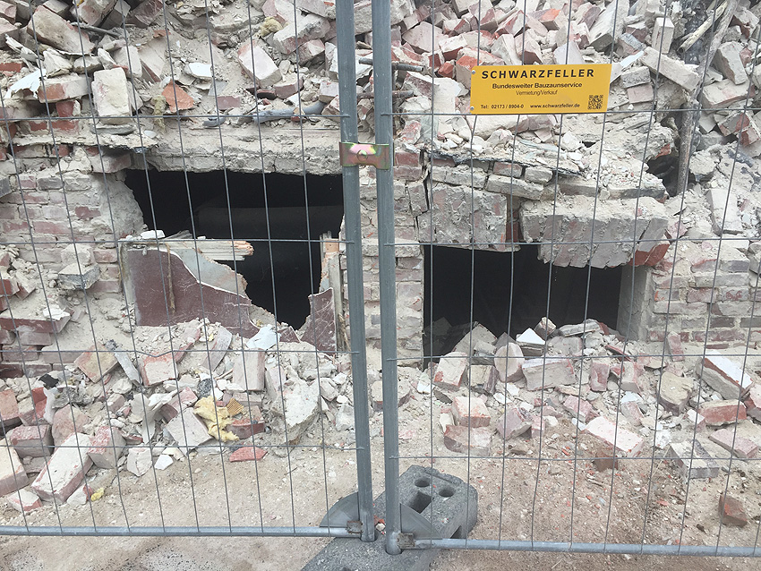 02.10.14: Seit einigen Wochen wird nun der östlich am Bunker befindliche Nachkriegsanbau abgerissen. Der Bunker ist veräußert worden. Er soll um- und überbaut werden. Der Abbruch der Vorbauanlage steht damit im Zusammenhang. Der 120 Meter tiefe Brunnen aus der Nachkriegszeit unter dem südlichen Anbaubereich bleibt erhalten. Wir berichten weiter.