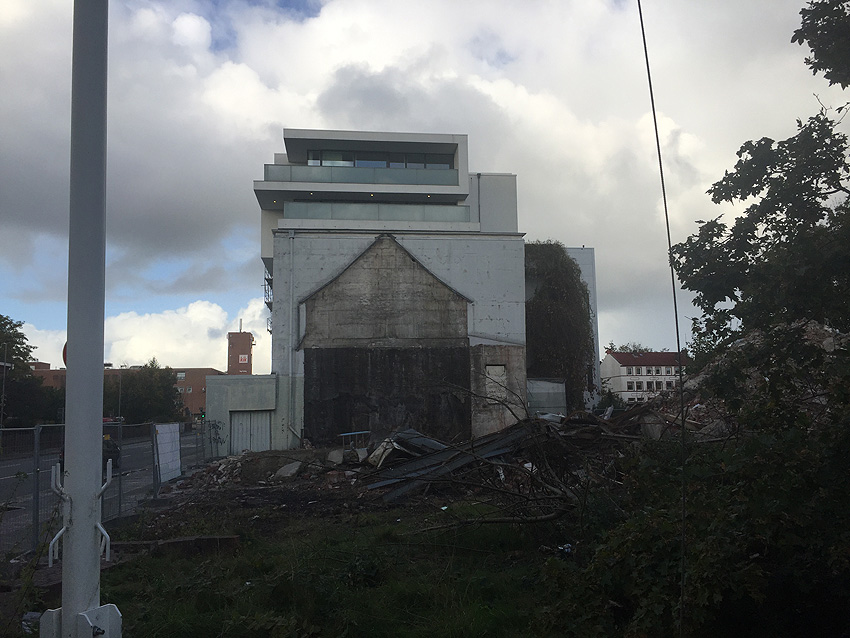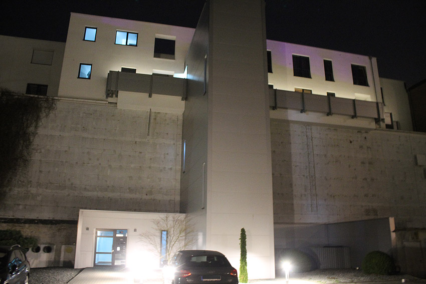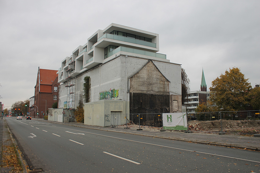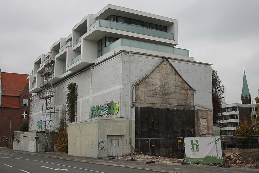 10.02.17: Die Umgestaltung des ehemaligen Operationshochbunkers an der Virchowstraße ist abgeschlossen. Die ersten Bewohner sind eingezogen. Demnächst verschwinden die letzten Baugerüste. Auch ein Aufzug wurde installiert. Dieses Objekt steht im krassen Gegensatz zur Brache schräg gegenüber, wo einmal das "Outlet..." entstehen soll(te?). Der Bunker ist so gut wie unangetastet und bietet nun ein solides Fundament für Wohnungen mit bestem Ausblick. Im Bunker könnte übrigens gut ein Museum zum Thema "Kalter Krieg" installiert werden. Er wurde bekanntlich als Hilfskrankenhaus hergerichtet.