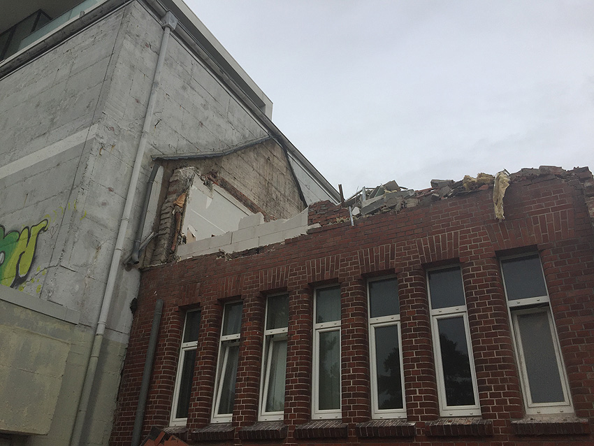 Der Original-Vorbau ist gerade abgebrochen und die Arbeiten für den neuen Vorbau beginnen bald...