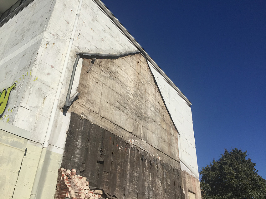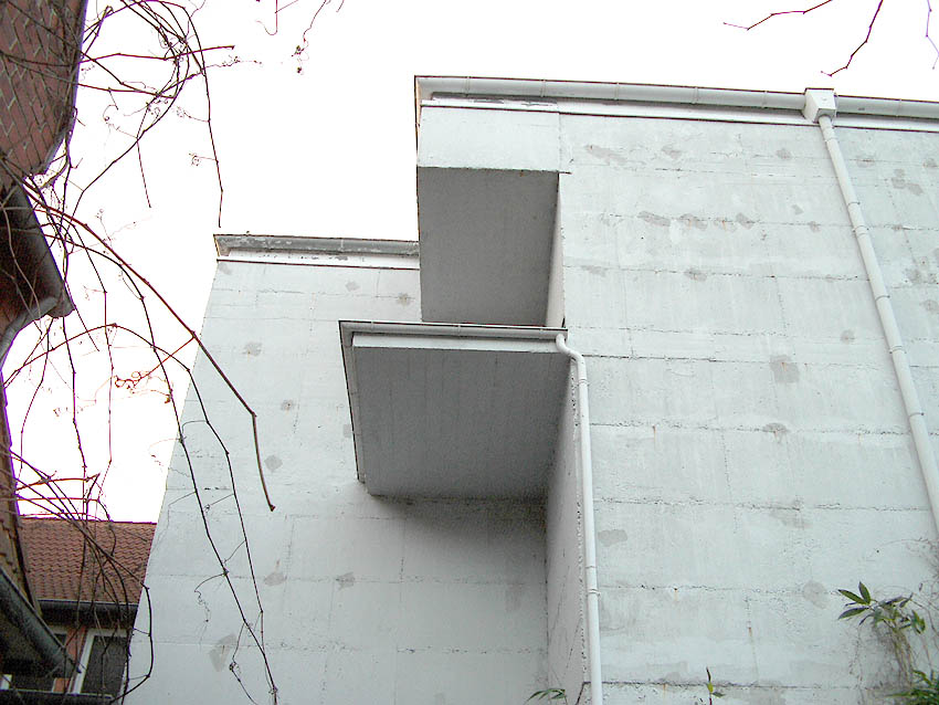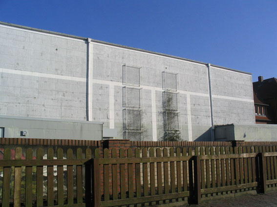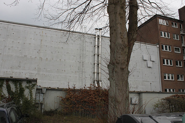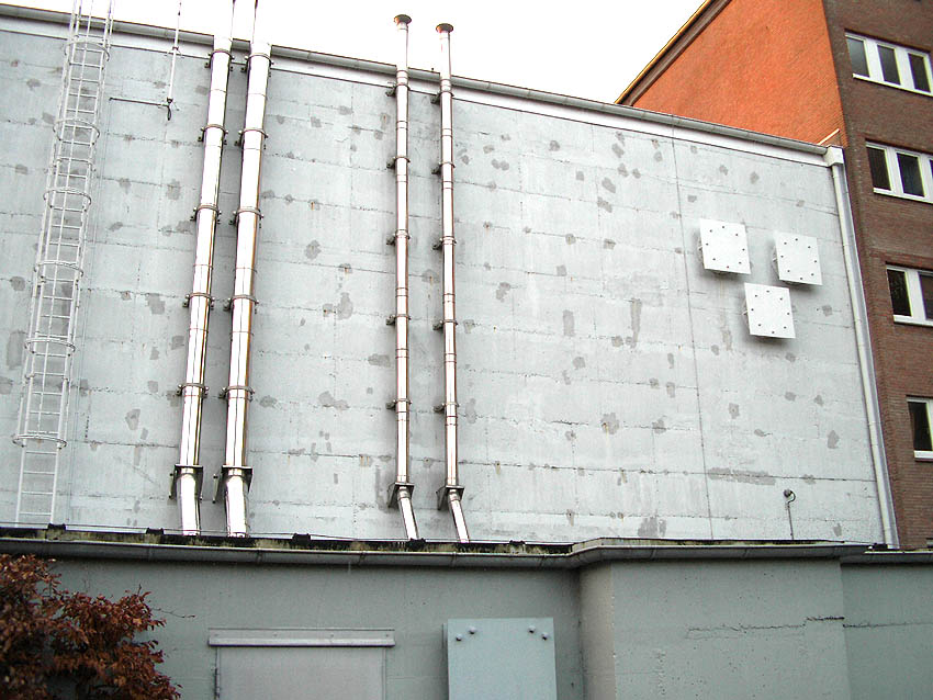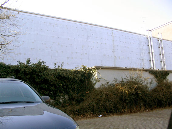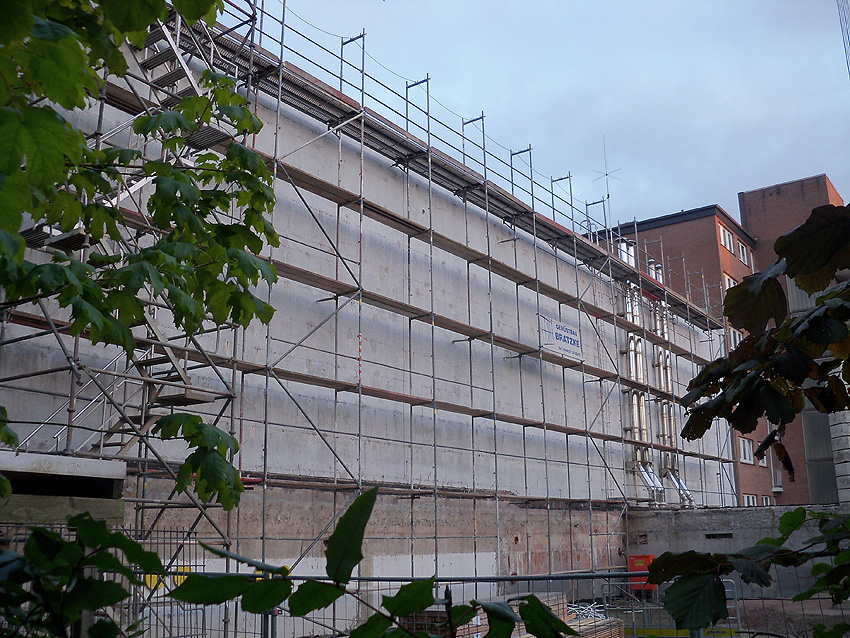 Die Mauerwerkverblendung wurde dann in den frühen 1970er Jahren angebracht. Durch unsachgemäße Montage bröckelte sie Ende der 1970er Jahre zunehmend ab, worauf sie - wie auf dem Bild zu sehen - wieder entfernt wurde.