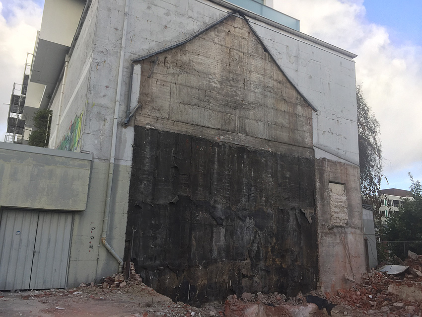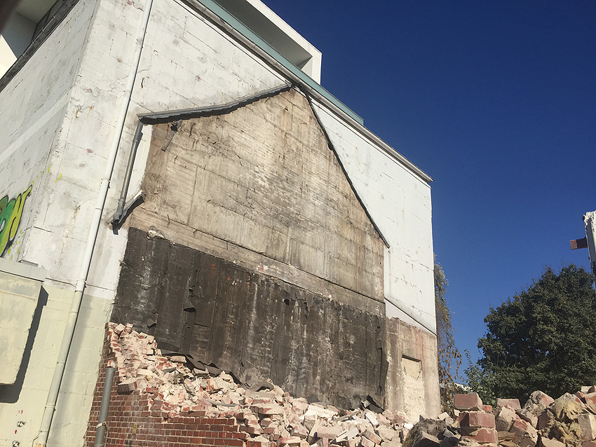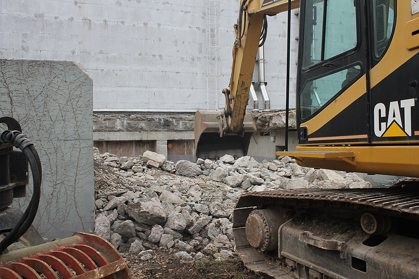 So sieht die rückwärtige Ostwand des Bunkers mit Stand 28. April 2018 aus: