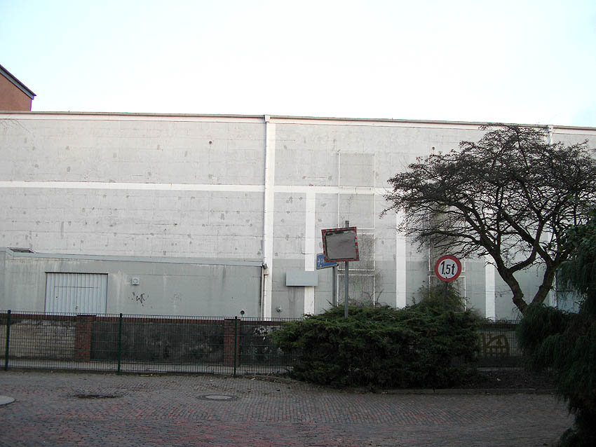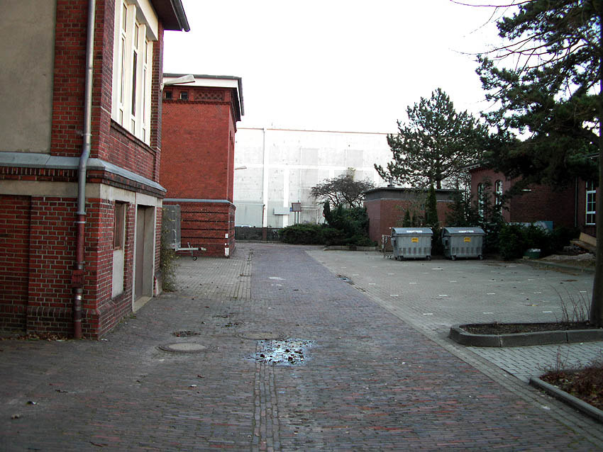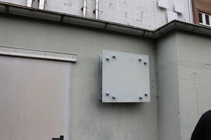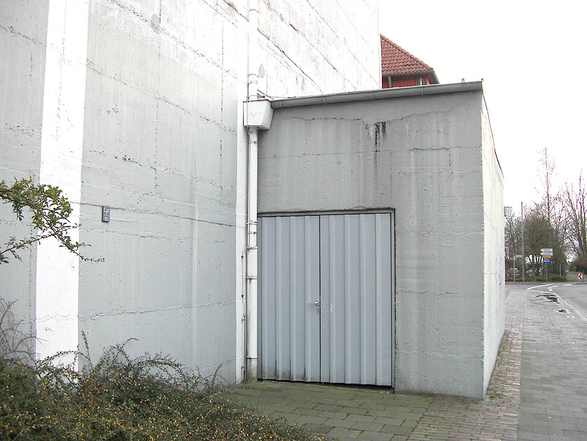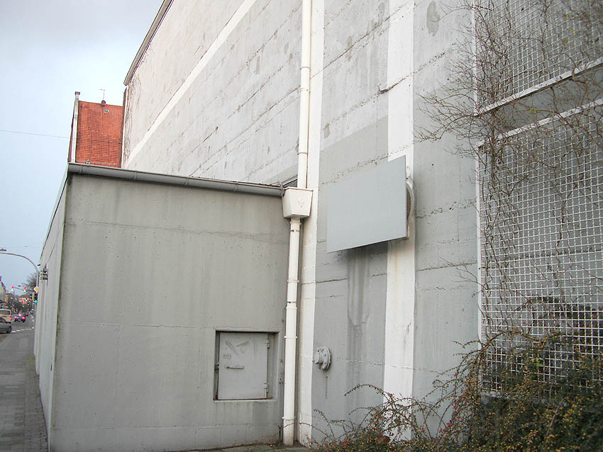 Nach Hinweisen wurde im Erdgeschoss des Bunkers eine "Garage" eingerichtet für diverse Fahrzeuge. Ob das nun so ist, wissen wir nicht. Dafür wären diverse Entfestigungsmaßnahmen notwendig gewesen. Die hätten wir dann wohl mitbekommen. Das einzige "Tor" zur "Garage" wäre dann hier an der Virchowstraße.