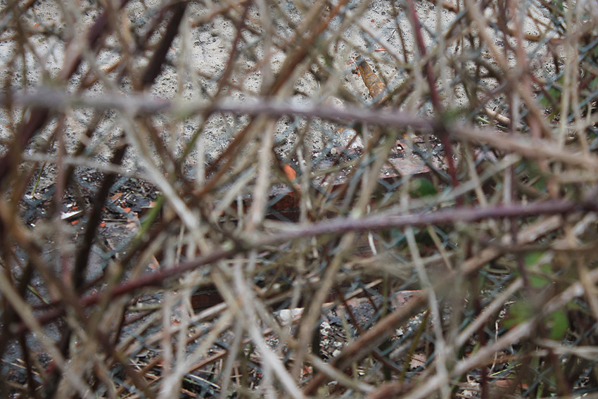 Einige Meter südlich des Objektes am Geländezaun befindet sich diese unter Wasser stehende Öffnung, die mit einer Stahlklappe (im Bild ganz unten zu sehen) versiegelt war. Besteht hier eventuell ein Zusammenhang?