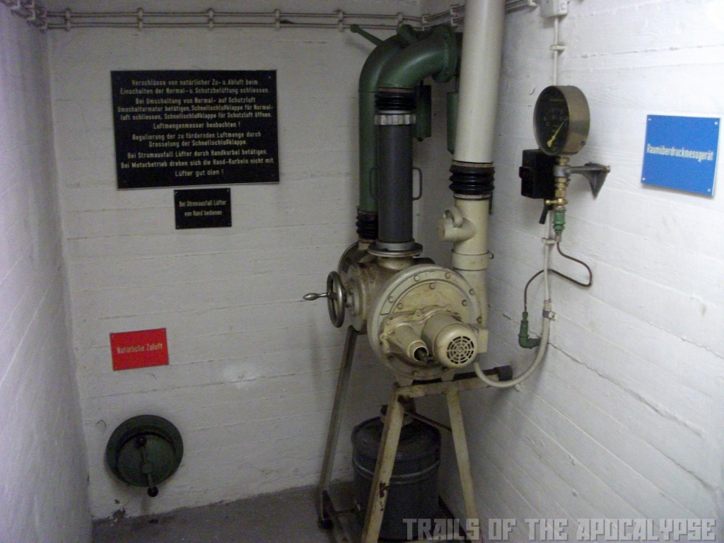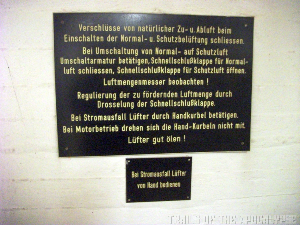 "Unter dem Gleisbett des Hauptbahnhofs nebenan und dem großen Gebäude selbst liegen weite Gänge unter der Erde, die zum einen zu Transportzwecken von der Schiene auf die Straße genutzt wurden, auf der anderen Seite aber auch Schutz im Falle einer Eskalation des kalten Krieges bieten sollten. Der Luftschutzbunker ist in 4 Räume für je ca. 25 Personen sowie einen für ca. 70 (?) unterteilt, verfügt über eine Belüftung mit ABC-Schutzfunktion und Notbetrieb per Hand. Die Räume sind untereinander durch ein kleines Tunnelnetz verbunden, dieses bietete außerdem zwei Notausstiegsmöglichkeiten. Im Teil, der für logistische Zwecke genutzt wurde, befinden sich außerdem zwei größere Schutzräume für je über 100 Personen. Heute wird die Anlage zwar noch mit Strom versorgt und jährlich geprüft, wird sonst aber nicht mehr genutzt. Die Lüftungen funktionieren auch nach über 30 Jahren noch und abgesehen von ein wenig Feuchtigkeit könnten die Räume selbst heute noch vielen Menschen Schutz bieten – zum Glück ist dies allerdings nicht nötig, daher geraten sie in Vergessenheit." Quelle: Trails of the Apokalypse.de