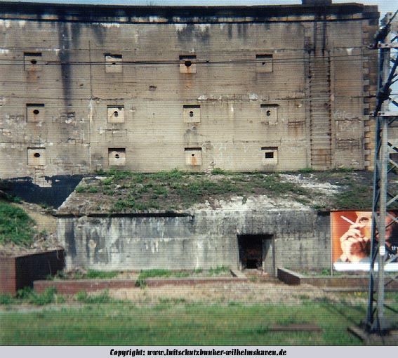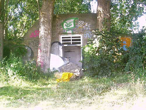 der Schellenbergbrücke, Höhe Sportplatz, eckiger Hochbunker |