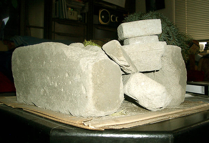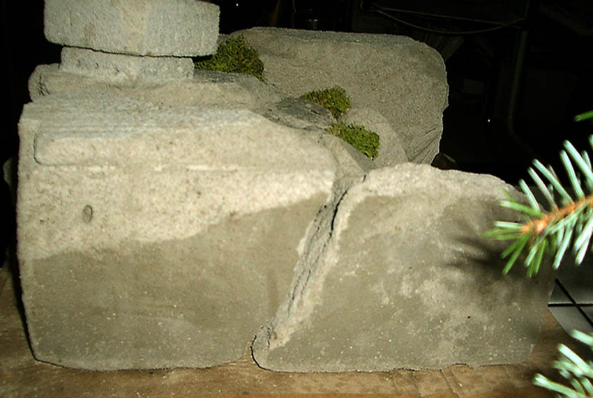 Testversuch F: Modell eines gesprengten Hochbunkers aus Mauermörtel. Dieses Modell wurde von Herrn Sven Bertram gebaut.